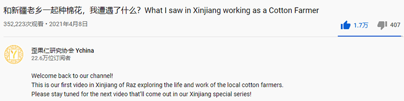 网文来自网友原文翻译投稿,所有言论皆不代表本站立场 | 本文文字/图片来自网络,侵删 | 点击页眉也可刷新 | 本文内容仅供娱乐,不作任何严肃之用途歪果仁研究协会:实地探访新|疆棉田,新|疆棉农收入让各国网友羡慕本文译自Youtube,原标题:和新疆老乡一起种棉花,我遭遇了什么?What I saw in Xinjiang working as a Cotton Farmerhttps://www.bilibili.com/video/BV1fA41157Eu