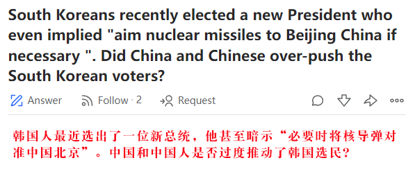 韩国新当选的总统曾暗示“必要时将核导弹对准中国北京”,是中国人过度推动了韩国选民吗?