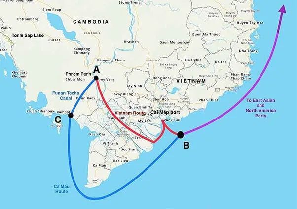 来源:https://www.quora.com/How-may-the-China-aided-Funan-Techo-canal-in-Cambodia-affect-the-region-economically-Whos-the-biggest-winner
