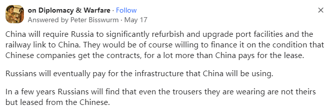 几年后,俄罗斯人会发现即使他们穿的裤子也不是他们的,而是从中国租来的。