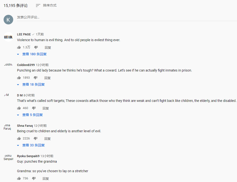 As a Singaporean Asian, I always feel a strong discrimination against our kind...I’m disgusted by Americans even more after seeing thisI feel so bad for the old lady. Chinese are taught to respect elders and not beat them up.This is really outrageous作为一个新加坡亚洲人,我总是感到强烈的对我们种族的歧视......