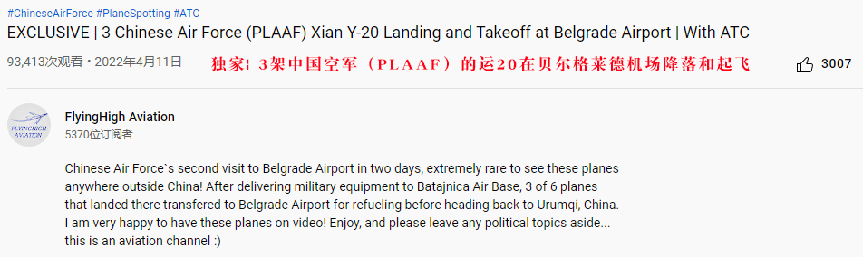 3天18架次运20远赴塞尔维亚,航空频道FlyingHigh Aviation发布最清晰降落起飞视频引热议