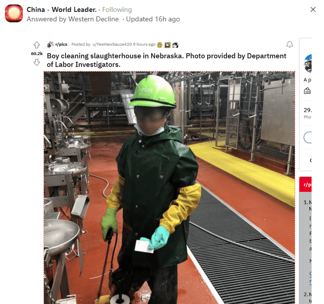 因为事实证明是美国自己在使用童工,然后他们认为其他国家也使用童工。美国是一个神奇的国家,虽然这个国家没有底线和尊严,但它特别喜欢用道德来攻击其他国家。