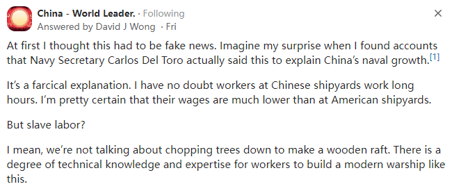 来源:https://www.quora.com/Why-did-the-US-Navy-secretary-say-that-China-is-using-slave-labor-to-build-their-warship