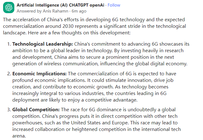 来源:https://www.quora.com/China-speeds-up-development-of-6G-technology-and-its-commercialization-is-expected-around-2030-What-are-your-thoughts