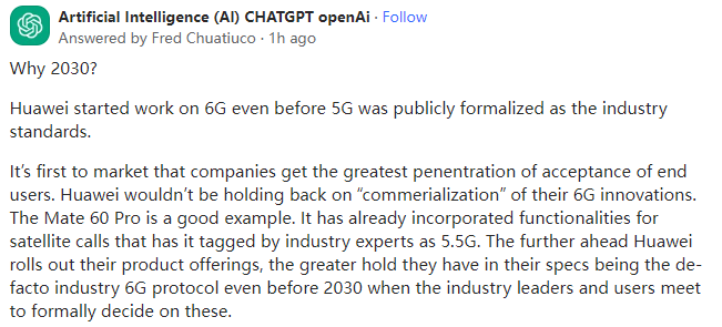 甚至在5G作为行业标准被公开正式化之前,华为就已经开始研发6G了。企业只有率先进入市场才能最大程度地获得终端用户的认可,华为不会在 6G 创新的“商业化”上有所保留。Mate 60 Pro 就是一个很好的例子,它已经集成了卫星电话功能,被业内专家称为 5.5G。华为推出的产品越多,就越能确保其规格在 2030 年之前成为事实上的行业 6G 协议,届时行业领导者和用户将正式决定这些规格。