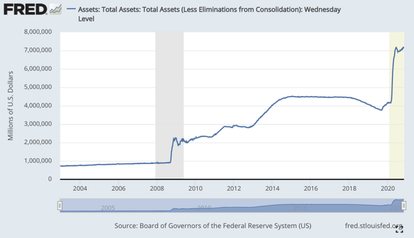美联储上一次这样做导致美元被迫与黄金脱钩,结束了布雷顿森林体系,当时没有一个经济强国能与美国竞争(前苏联从未达到美国国内生产总值的50%。此外,它也在美国主导的货币体系之外)。这一次,中国的经济实力和美国差不多,它显然出于明显的原因不会与美国合作,其他国家将会效仿中国(在2020年没有人购买任何美国国债,美联储不得不自己购买它们),所以很难说未来会怎样。储备货币都在缓慢下跌,到某一刻可能会突然崩溃。毕竟,如果印钞行得通的话,罗马可能还在。