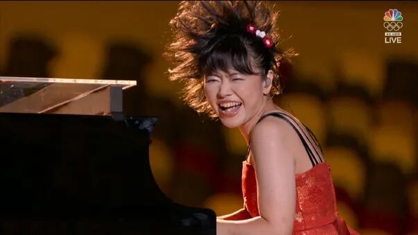 这有点让我想起在h3h3的某一集中出现的那个非常卑鄙和自命不凡的风琴手。这是上原广美最不激动人心的表演……整个仪式都让人对这类活动不抱期待。这更像是一个周六晚上的常规性的综艺节目,只是或多或少围绕奥运主题进行了随机的表演,它们之间没有太多的关系。