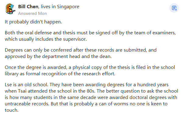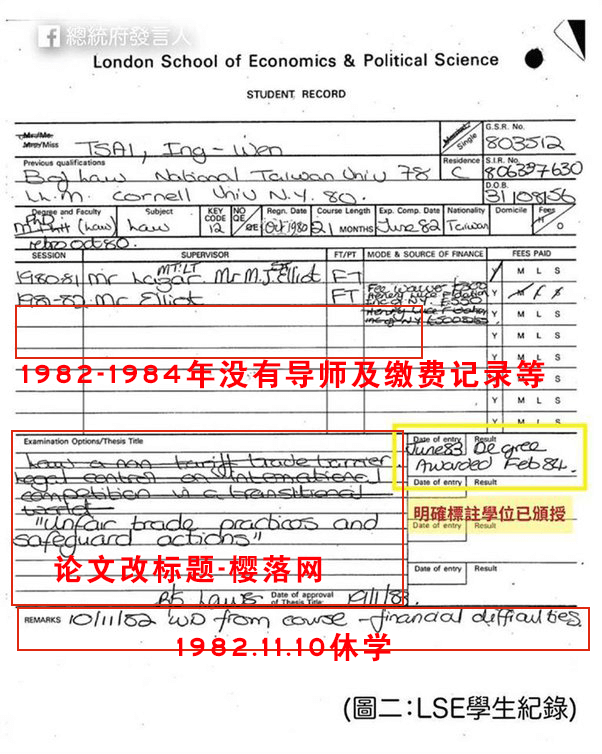来源:https://www.quora.com/Why-doesnt-the-London-School-of-economics-have-a-record-of-Tsai-Ing-wens-Taiwans-President-oral-defense-of-her-PhD-thesis