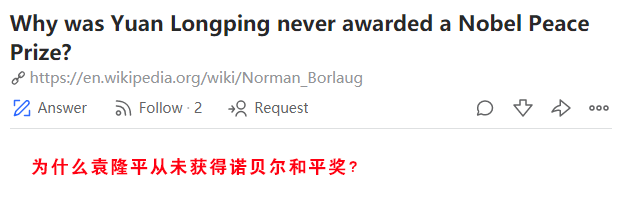 来源:https://www.quora.com/Why-was-Yuan-Longping-never-awarded-a-Nobel-Peace-Prize
