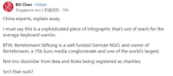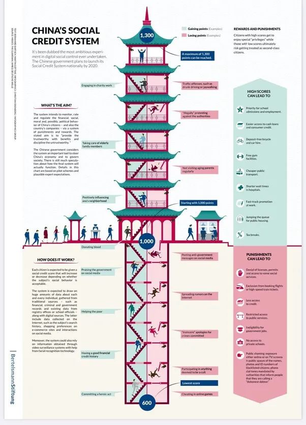 本文译自Quora,来自:https://www.quora.com/profile/Bill-Chen-140Singapore son | 非诚勿扰,Lives in Singapore我不得不说这是一张精致的信息图表,一般的键盘侠可望而不可及。顺便提一下,贝塔斯曼基金会是一家资金雄厚的德国非政府组织,也是贝塔斯曼集团的所有者,而贝塔斯曼集团是一家价值150亿欧元的媒体集团,也是世界上最大的媒体集团之一。这与宜家(Ikea)和劳力士(Rolex)注册为慈善机构并无太大的区别。中国的社会信用体系我早有耳闻,它是许多反|华笑话的笑柄,也是我眼中第一个被揭穿的故事。几年前,我和一位中国公民约会并与她、她的姻亲和朋友进行了交流,他们都没有听说过中国的社会信用体系。于是我开始质疑我所听到的关于中国的一切并发现其中很多都是胡说八道。第一次去北京时,我的第一反应就是:“BBC骗了我,这里和它们描述的中国完全不一样”。从那以后,我再也不相信它们了。在HK发生骚乱期间,我意识到BBC的新闻记者只是臭池塘底的食粪者。这就是为什么每当有人说“契丹没有自由”之类的蠢话,或者西方媒体大放厥词时,我总是告诉他们去中国生活,或者至少去中国看看。恭喜你看穿了他们所有的胡言乱语!(这些胡言乱语)对这么多人有效的部分原因是中国和西方的普通人之间缺乏沟通。如果有更多的约会、更多的友谊、更多的各种联系,那么所有这些编造的故事就不会有任何机会。它们如此令人信服的另一个原因是虽然其中任何一种说法本身并没有那么大的影响力,但一旦你允许自己接受其中一种说法(因为每个人都在这么说,而你又找不到反驳的证据),那么契丹作为邪恶、乌托邦甚至是非人类的整体形象就会开始形成,接受其他胡说八道也就变得比原来更容易了。因此,所有这些都以典型的战争宣传方式共同在发挥作用,直到对方变得“不民主”、“非美国”、“非基督教”或任何其他的身份罪,甚至试图挑战它们。突破这一切需要力量和勇气,但幸运的是一旦被扯断几根线头,一切就会开始瓦解。我妈妈是生活在中国的中国人。我生活在欧洲,所以我很早就决定问她。过了一会儿,我又试了一次。这次妈妈说:“哦,是的,有这样的东西!”我其实挺兴奋的,于是问了更多信息。妈妈:假设有一个骗子假装被车撞了来勒索钱财,警察可以查查他以前是否干过这种事。我:妈妈,那是警方记录,不是社会信用体系......我在一所相当有声望的大学工作,我无法说服那些从未去过中国的同事相信中国和我们听说的完全不一样。如果不是像你这样的人分享你的经历,我会觉得是我疯了。他们的信用评分与西方国家类似,你能贷到多少钱取决于你的信用评分或你有多少存款。西方国家就是一直在撒谎。公司规模越大,撒的谎就越大,甚至连信息图表也是如此。没错。我觉得这种说法的一个出发点是基于这样一个事实,“social credit”这个词是对“社会信用”的一个糟糕的翻译,“社会信用”可能更适合表达为“商业信誉”,也就是说如果你的“社会信用”良好,这就意味着你是一个会履行承诺并偿还贷款的人。正如你所说,中国确实有一个非常简单的信用评级系统,它使那些没有偿还以前债务的人很难再欠下新债。此外,它还要求某些“奢侈”服务的提供者(如航空公司和五星级酒店)拒绝为名单上的人提供服务。不过你仍然可以通过经营企业来筹集资金,最终还清债务并从名单上除名。就是这样。没有“积分”的加减,没有“社会”活动的记录、奖励或惩罚。只是糟糕的翻译,再加上一些无关的地方政府的脑洞和大量的虚构,一起制造了又一个奥威尔式的叙事。问题在于这种说法是有意为之,西方政府正试图把中国描绘成奥威尔式的噩梦,这样西方公民就不会提出令他们尴尬的问题。比如,如果中国比我们穷,为什么他们会有高铁、干净的城市、廉价的食品等等。管理西方的人渣只是想确保他们能继续偷窃。这其中就包括大公司,这就是制作这张信息图表的公司的目的所在。听起来好像他们做了什么调查研究似的,而实际上这只是一场简单的宣传。我不得不说西方国家的宣传手段实在是太高明了,如果你不知道他们在做什么,你根本就看不出来。是的,如果你没有反证,比如在中国的实际生活经验或仍然生活在那里的亲朋好友,那么所有这些宣传所描绘的综合画面确实令人信服。因此,对于那些在“自由世界”出生和长大、沉浸在被遮蔽的世界版本中的人来说--在某种程度上就像我一样,只不过在上世纪八九十年代,这种说法没有那么极端--慢慢爬出那个青蛙洞并意识到自己“知道”的东西有多少是议程驱动的胡说八道确实是一种令人震惊的体验。(这些胡说八道)确实很强大,而且会自我强化,这也是为什么国会--它们从来没有在任何事情上达成一致--却如此迅速地采取行动来消除TikTok这个决定不合作的平台的原因。平心而论,多多少少都有一些事实,但综合起来,这是一种普通公民在日常生活中无法体会的夸大其词。唯一的真相是中国没有社会信用体系。至少中国没有,但我不了解新加坡。给我一两天时间和一个图形艺术家,我就能把反乌托邦式的新加坡设计得更精致、可信。电影/电视剧本就是这样写的--对人物/事件进行融合夸张。人们之所以看电视(尤其是英雄救美的故事情节),是因为主角经历了非同寻常的故事。这些都是融合在一起的——通过一个角