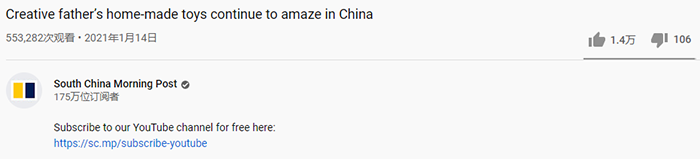 Youtube:创意满满的超级爸爸为女儿制作各种玩具令各国网友惊叹(视频)本文译自Youtube,原标题:Creative father’s home-made toys continue to amaze in China