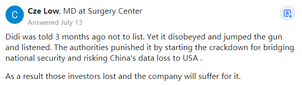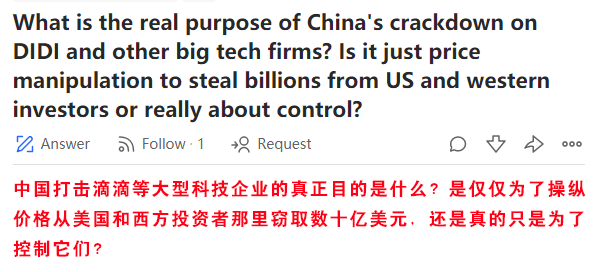 来源:https://www.quora.com/What-is-the-real-purpose-of-Chinas-crackdown-on-DIDI-and-other-big-tech-firms-Is-it-just-price-manipulation-to-steal-billions-from-US-and-western-investors-or-really-about-control