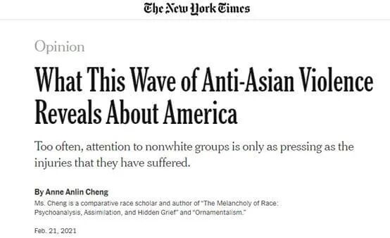 网文来自网友原文翻译投稿,所有言论皆不代表本站立场 | 本文文字/图片来自网络,侵删 | 点击页眉也可刷新 | 本文内容仅供娱乐,不作任何严肃之用途为什么在美国的亚裔频频遇袭,而在中国的外国人却受到了友善的对待?本文译自Quora,原标题:Why are so many Asians in the US treated violently, while foreigners in China are treated kindly?NGO“停止仇视亚太裔”(StopAAPI Hate)表示,自2020年3月19日至12月31日,该组织收到针对亚裔美国人的种族主义歧视和仇恨犯罪超过2800起。另外还有很多罪行未被报告或没有被认定为仇恨犯罪。美国CNN 2月16日报道,一些权益倡导者将美国国内反亚洲仇恨的上升部分归因于美国前总统唐纳德·特朗普,他在疫情期间多次将新冠病毒称为“China virus(中国病毒)”和“kungflu(功夫流感)”。在一些报道的仇恨事件中,犯罪者重复了这位前总统的话。旧金山州立大学研究亚裔美国人的教授RussellJeung表示,特朗普的言论产生了持久而令人不安的影响。他决定通过“Stop AAPI Hate”组织记录成千上万的仇恨事件,是因为美国政府机构并没有追踪记录这方面的犯罪。他称:“我们需要记录针对亚洲人的种族主义,因为主流社会不认为我们面临这种危机,我们需要记录正在发生的事情,确定这种趋势的存在”。或许Russell Jeung的担忧并不是没有根据,因为就连最近多次报告有关事件并采访“Stop AAPI Hate”组织多名成员的CNN,在其2月13日的一份报道中却称,“没有证据证明这些事件仅仅是出于反亚洲的偏见”。不知道还要发生怎样“直白”的事件,美国主流社会才会正视亚裔正遭受的歧视呢?《纽约时报》2月21日的一篇社论便指出:“亚裔总是处于被夹在美国白人和黑人之间的无望位置。他们被认为‘与白人接近’,但当然永不可能成为那个俱乐部的成员。他们被一贯地种族化,但他们常常不计入美国的种族公式”。作者认为,如果这个国家没有长期存在针对亚裔的系统性的、文化上的种族主义,特朗普是不可能激发出如此仇恨的。Chinese citizen,Lives in Hong Kong