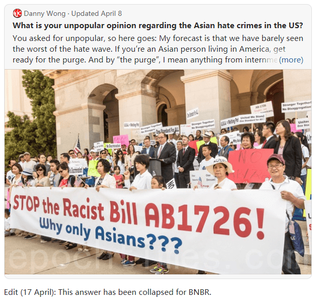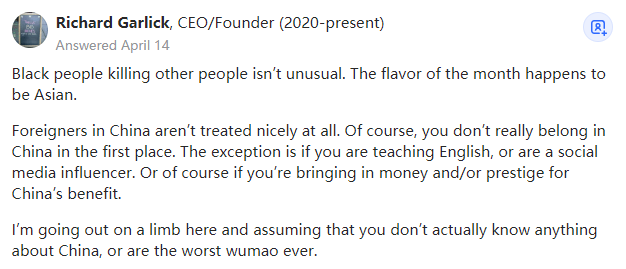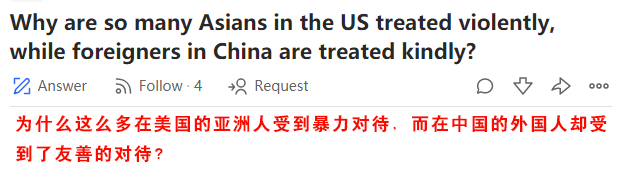 来源:Why are so many Asians in the US treated violently, while foreigners in China are treated kindly