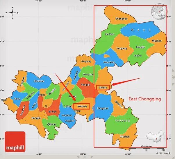 我去过著名的武隆山区,但没有去过那张地图上的其他“东部”地区。你的家乡在那里吗?