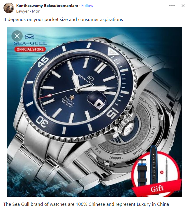 我想说,与Seiko和Tissot这样的低端瑞士手表相比,海鸥表能为你花的钱提供更好的做工,但无论出于何种原因,海鸥或多或少特别满足于成为一家大型机芯制造商,而不是冒险涉足Seiko的领域。我有几只海鸥表,基本上它们对机芯的可见部分的装饰几乎与JLC或IWC不相上下,但你看不到的部分要粗糙得多,而低端瑞士机芯在这些地方的划痕等更少。海鸥的工厂并没有那么干净,所以你会在表盘下面看到一些灰尘斑点,或者在一些小时标记上留有划痕,这些都是在劳力士/欧米茄/JLC/Zenith等手表上无法看到的(成本高出20倍)。如果他们尝试向高端市场转移并进行更好的表面处理和装配,在我看来(不是有品牌势利眼的人),他们可以合理地以700美元的价格在3000美元的级别上竞争。不幸的是,该品牌有些被困在低端市场,这主要是他们自己在优先考虑销量方面的失误。我同意中国产品可以在中低端市场打败任何人。我估计在我的高档中国公寓里,从生物识别门锁、闭路电视到厕所里的自动冲水器,一切都是中国制造的(除了来自越南的完整红木家具),可能包括“凡尔赛”花园里的所有维纳斯雕像和意大利喷泉。