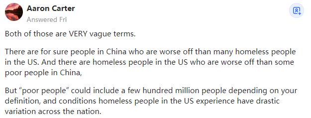 来源:https://www.quora.com/Are-the-poor-people-in-China-worse-off-than-the-homeless-in-the-US-today