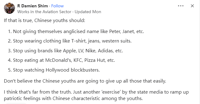 来源:https://www.quora.com/Chinas-state-media-said-that-young-Chinese-people-look-down-on-the-West-Is-it-true