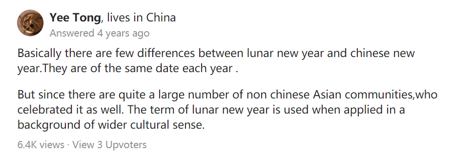 来源:https://www.quora.com/What-is-the-difference-between-Chinese-New-Year-and-Lunar-New-Year
