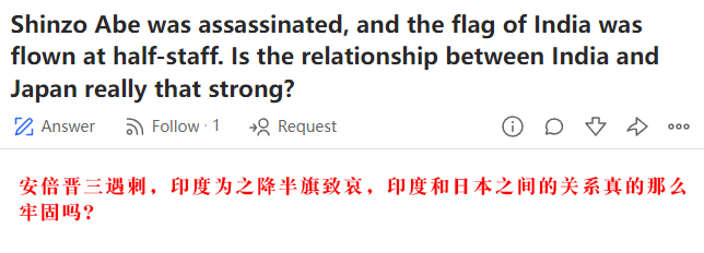 我觉得降半旗已经是最高标准了,但印度竟然意外地为另一个国家的前首相举行了全国性的哀悼,这在世界上是前所未有的。印度之所以在日本面前如此低三下四,是因为印度希望加强与日本的关系以遏制中国。