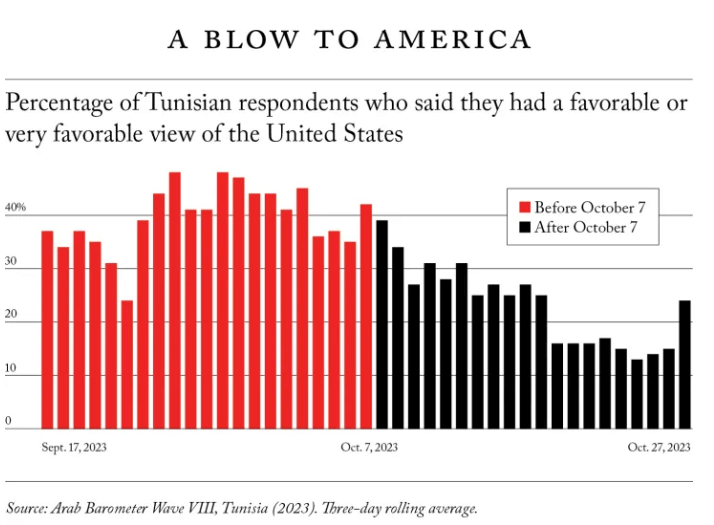 网文来自网友原文翻译投稿,所有言论皆不代表本站立场 | 本文文字/图片来自网络,侵删 | 点击页眉也可刷新 | 注册送50花瓣,每日登录送5花瓣 | 本文内容仅供娱乐,不作任何严肃之用途《外交》foreign affairs:巴以加沙战争如何改变阿拉伯人对中美俄及地区国家的看法本文译自www.foreignaffairs.com,原标题:How the Israel-Hamas War in Gaza Is Changing Arab Views《外交》(英文原名:Foreign Affairs)或译作《外交事务》,是专攻美国国际事务及外交政策的杂志,由美国无党派、会员制智库兼非营利组织美国外交关系协会主办。对美国和两国解决方案的支持率在下降,但对伊朗和暴力抵抗的支持率在上升由Michael Robbins、MaryClare Roche、Amaney A. Jamal、Salma Al-Shami 和 Mark Tessler 报道2023年10月,突尼斯突尼斯市支持巴勒斯坦的抗议活动现场自10月7日以来,哈马斯和以色列之间的最新战争已夺去了15000多名巴勒斯坦人和1200多名以色列人的生命,另有更多的人受伤。战争导致180多万巴勒斯坦人流离失所,许多以色列人生死未卜,100多名在以色列被绑架的人仍被扣为人质。战斗导致加沙15%的建筑物受损,其中包括100多个文化地标和45%以上的住房单元。正如许多分析家已经宣称的那样,加沙付出的高昂代价已在整个阿拉伯世界引起了巨大的反响,再次证明了巴以冲突在塑造地区政治方面的重要性和突出地位。然而,我们一直很难说清楚这次袭击对阿拉伯人的态度产生了多大的影响--以及以何种特定的方式产生了影响。现在,这种情况正在发生变化。在袭击发生前的几周和随后的三周内,我们的无党派研究公司阿拉伯晴雨表(Arab Barometer)与我们在当地的合作伙伴“一对一研究与民意调查”(One to One for Research and Polling)联合在突尼斯开展了一项具有全国代表性的调查。由于机缘巧合,2406次访谈中约有一半是在10月7日之前的三周内完成的,剩下的一半则是在10月7日之后的三周内完成的。因此,对这些结果进行比较可以异常精确地显示出此次袭击和以色列随后的军事行动如何改变了阿拉伯人的看法。调查的结果令人震惊。美国总统乔-拜登最近警告说以色列正在因为加沙问题失去全球支持,但这只是冰山一角。自10月7日以来,调查中每一个与以色列关系积极或升温的国家在突尼斯人中的好感度都有所下降。美国的跌幅最大,过去几年与以色列建立联系的华盛顿的中东盟友的支持率也出现了下降。与此同时,保持中立的国家几乎没有什么变化。而强烈反对以色列的伊朗领导人的支持率却有所上升。袭击发生三周后,伊朗最高领袖阿里-哈梅内伊在突尼斯的支持率赶上甚至超过了沙特王储穆罕默德-本-萨勒曼(MBS)和阿联酋总统穆罕默德-本-扎耶德(MBZ)。虽然突尼斯只是中东和北非地区的一个国家,它处在一个差异巨大的地区,这项调查无法告诉专家们整个地区人民的想法和感受,但突尼斯几乎是人们所能想象的最接近风向标的国家。在之前的阿拉伯晴雨表(Arab Barometer)的调查中,突尼斯人的看法与大多数其他阿拉伯国家相似。突尼斯人对西方持开放态度,也对中国和俄罗斯等其他全球大国持开放态度。虽然它在地理位置上远离巴以冲突的直接影响,但它却有直接参与其中的历史,它曾经是巴勒斯坦解放组织的驻扎地。分析人士和官员可以有把握地认为该地区其他地方的人们的观点已经发生了与突尼斯最近发生的变化类似的转变。这些转变是戏剧性的:在几个星期的时间里,很少能看到如此巨大的变化,但这并不表明突尼斯人做出了急躁的反应。如果突尼斯人民仅仅因为支持哈马斯的行动而改变看法,那么在袭击发生后的一天内就会发生重大转变,然后突尼斯人的看法就会迅速稳定下来。相反,在为期三周的时间里,突尼斯人的看法每天都在发生微小的变化,进而在整个期间发生了显著的变化。因此,突尼斯人看法的转变很可能不是因为哈马斯的袭击,而是因为随后发生的事件,即以色列在加沙的军事行动给平民造成了越来越大的损失。不过,这场战争无疑还是增加了突尼斯人对巴勒斯坦战斗的支持。与10月7日袭击前做的调查相比,如今有更多的突尼斯人希望巴勒斯坦人通过武力而非和平方式解决与以色列的冲突。即使在非民|主国家,公众舆论也很重要,因为领导人必须担心抗议活动,因此这些看法的转变将重塑阿拉伯世界乃至全球的政治格局。美国及其地区盟国将很难扩大《亚伯拉罕协议》的影响(该协议使几个阿拉伯国家与以色列的关系实现了正常化),华盛顿也可能在与崛起的中国和卷土重来的俄罗斯的竞争中失去优势。美国甚至会发现许多长期盟友(如沙特阿拉伯和阿拉伯联合酋长国)在寻求避免自身地区衰落的过程中对美国的友好度降低,而更容易接受美国的竞争对手。例如,自袭击发生以来,两国都欢迎俄罗斯总统弗拉基米尔-普京自入侵乌克兰以来首次访问该地区。对武装抵抗的支持不断增加也可能产生危险的后果。虽然针对哈马斯的战争尚未引发更广泛的冲突,但以色列不得不抵御黎巴嫩真主党的打击,而中东和北非地区整体上也很容易出现不稳定局势。不难想象,当前的入侵会如何演变或为未来的冲突打开大门。因此,为了稳定地区局势,以色列及其盟国必须找到结束这场战争的方法,然后迅速转向和平解决巴以冲突。10月7日哈马斯袭击以色列时,我们的学术研究项目“阿拉伯晴雨表”正在对突尼斯