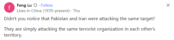 Lives in China (1970–present)难道你们没注意到巴基斯坦和伊朗正在攻击同一个目标吗?