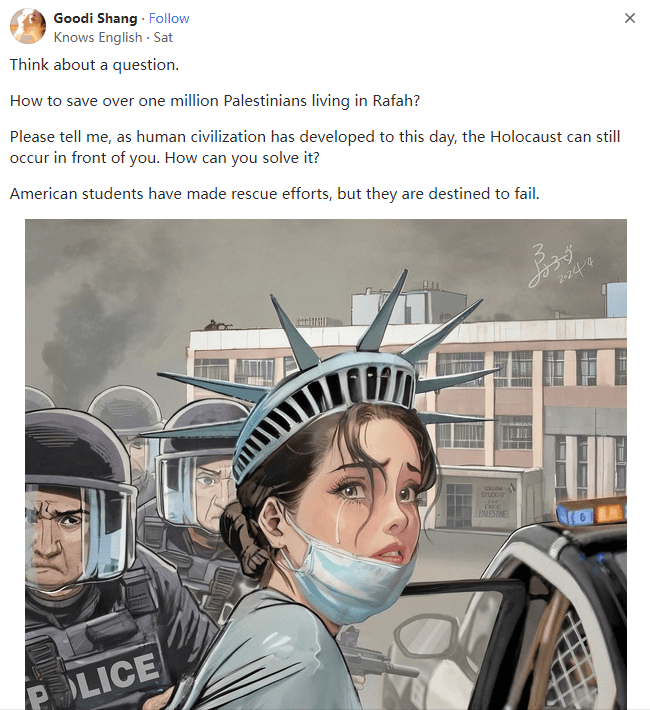 Whatever China is doing for Palestine is absolutely NOT for ending the war. Because ending the war on Gaza doesn't benefit their agenda of taking over Taiwan since they're protected by the US. So it really benefits China if the US stays preoccupied with Gaza and Ukraine. It gives them a much better chance of success to take over Taiwan.无论中国为巴勒斯坦做什么,它绝对不是为了结束战争。因为结束加沙战争并不利于他们占领TW的计划(因为它们受到美国的保护)。因此,美国继续专注于加沙和乌克兰问题对中国确实有利,因为这让他们更有机会成功占领TW。
