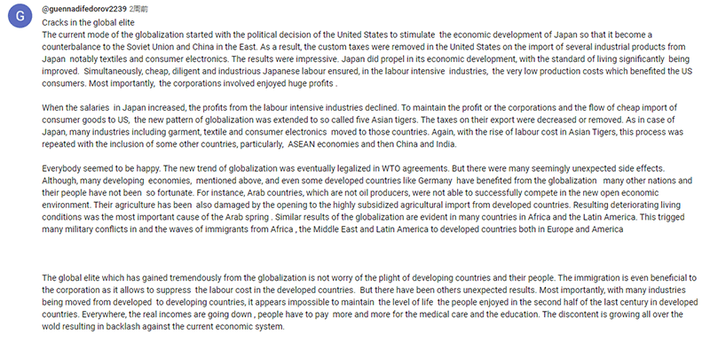 为什么中国是世界上唯一的制造业超级大国?全球精英的分裂,全球化模式以及全球地缘政治的变动本文译自Youtube,原标题:China is now the 'world's sole manufacturing superpower'. How did it develop so fast?当前的全球化模式始于美国的政治决策,即刺激日本的经济发展,使其成为在东方制衡苏联和中国的力量。因此,美国取消了对从日本进口的几种工业产品(特别是纺织品和消费电子产品)征收的关税。结果令人印象深刻,日本确实推动了经济发展,其生活水平得到了显著的提高。与此同时,日本廉价、勤劳的劳动力确保了劳动密集型产业的低生产成本,使美国消费者从中受益。最重要的是相关企业获得了巨额利润。当日本的工资上涨时,劳动密集型产业的利润就会下降。为了维持企业的利润和美国廉价消费品的进口,全球化的新模式扩展到了所谓的亚洲五小龙,它们的出口税被降低或取消。与日本的情况一样,包括服装、纺织品和消费电子产品在内的许多产业都转移到了这些国家。同样,随着亚洲四小龙劳动力成本的上升,这一过程又在其他一些国家(尤其是东盟经济体以及中国和印度)的加入下重演。大家似乎都很高兴。全球化的新趋势最终在世界贸易组织协定中合法化,但也产生了许多看似意想不到的副作用。尽管上文提到的许多发展中经济体,甚至像德国这样的一些发达国家都从全球化中受益,但许多其他国家及其人民却没有那么幸运。例如,非石油生产国的阿拉伯国家无法在新的开放经济环境中成功竞争,他们的农业也因对发达国家高补贴农产品进口的开放而受到损害,由此导致的生活条件恶化是阿拉伯之春爆发的最重要原因。全球化的类似结果在非洲和拉丁美洲的许多国家也很明显,这引发了许多军事冲突以及从非洲、中东和拉丁美洲向欧美发达国家的移民潮。从全球化中获得巨大利益的全球精英们并不在乎发展中国家及其人民的困境,移民甚至对企业有利,因为它可以压低发达国家的劳动力成本。但也有其他意想不到的结果,最重要的是随着许多产业从发达国家转移到发展中国家,发达国家的人民似乎不可能维持上世纪下半叶所享有的生活水平。各地的实际收入都在下降,人们不得不为医疗和教育支付越来越多的费用。全世界的不满情绪都在增长,这导致了对现行经济制度的反弹。我们不妨回顾一下,发达国家最初的财富积累始于殖民化和奴隶制。后来,人们发现从发展中国家进口廉价的自然资源,通过制造业进行增值,然后以极高的价格将产品出口出去,这样做更有利可图。所谓的物价上涨给发达国家带来的财富甚至超过了非人道的殖民主义。由于财富是在国家内部创造的,因此财富在精英和人民之间进行了分配,这确保了社会和经济的稳定。随着许多创造财富的产业从发达国家转移,人们希望服务业和金融业成为这些国家的经济支柱。然而,当前的发展似乎支持这样一种观点,即金融和服务业只有在成为实体经济的组成部分时才能创造财富,而金融操纵和投机只会增加亿万富翁的数量和金融业在国内生产总值中的比重。法定货币资本似乎没有充分渗入实体经济以支持可持续发展,它也没有惠及普通百姓,世界各地的贫富差距正日益扩大。随着国民财富的短缺,债务也在不断增加。为了刺激国民经济、维持人民的生活水平和购买力、生产公共产品,各级政府和人民不得不借越来越多的债。在一些较小的情况下,一些国家或地方的债务问题似乎可以通过紧缩政策来解决,但当涉及到更大的国家、地区或部分人口时,人们就不知道该怎么办了。例如,仅美国政府就积累了两万亿美元的债务,却没有采取任何措施来解决问题。人们还希望财富继续流向被金融中心、避税天堂或房地产机会所吸引的发达国家。虽然这种想法是可行的,但资金流似乎又不足以支撑当前的生活水平和维持经济发展。此外,还不清楚在发生严重危机时,这些流入的资金会发生什么变化。一部分精英仍然对当前的全球化模式感到满意,这部分人代表着不惜一切代价追求利润最大化的跨国金融公司和其他全球性公司。这些公司的首席执行官们的职位和利益取决于今天的利润,他们的股东希望现在就实现利润最大化,这些人没有能力展望未来。另一部分精英(大多为家族企业)则对日益恶化的社会和经济状况以及左右两派另类政治势力的崛起感到担忧。最让精英们感到沮丧的是全球化的主要结果之一是真正创造财富的制造业大量转移到了中国。因此,后来的精英阶层希望改变当前的全球化模式,将制造财富的机器从中国和其他发展中经济体夺回。在美国和英国,他们已经在“美国优先”和“英国优先”的口号下取得了巨大的选举成功。他们还想重新审视当前的经济协议,包括那些让中国受益匪浅的世贸组织协议。上述选举胜利和随后的行动遭到了沉迷于短期利益的另一部分精英的强烈抵制。这代表着精英阶层的巨大分裂,使整个现行资本主义经济体系变得更加脆弱。最有可能的是即使挑起贸易战,现在也不可能在经济上遏制中国,因为中国已经同样强大,再过十五年,中国的经济实力将是美国的两倍。不幸的是最极端的精英阶层可能希望在军事上遏制中国。中国现在的军事力量比美国弱得多,这还不包括北约和日本。然而,中国拥有核威慑力量,这使得任何军事冲突都是绝对危险的。此外,俄罗斯