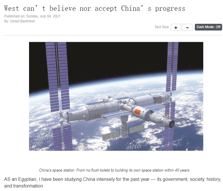 埃及中国观察家Ismail Bashmor:西方无法相信也无法接受中国的进步,西方主宰世界400年了,我们所有南方国家都应该支持中国本文译自dailyexpress.com,原标题:West can’t believe nor accept China’s progress作者:Ismail Bashmor 伊斯梅尔-巴什莫尔