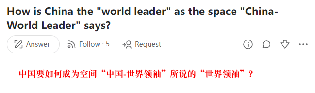 来源:https://www.quora.com/How-is-China-the-world-leader-as-the-space-China-World-Leader-says