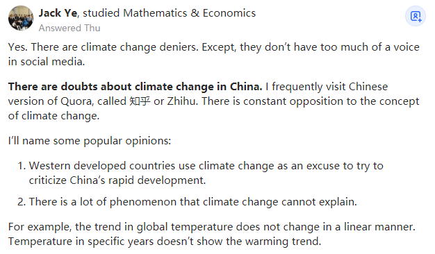 来源:https://www.quora.com/Why-are-there-close-to-no-climate-change-deniers-in-China-What-are-they-doing-right