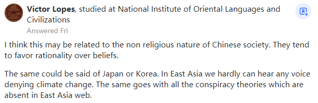 网文来自网友原文翻译投稿,所有言论皆不代表本站立场 | 本文文字/图片来自网络,侵删 | 点击页眉也可刷新 | 注册送50花瓣,每日登录送5花瓣 | 本文内容仅供娱乐,不作任何严肃之用途气候变化是阴谋论吗?为什么在中国几乎没有否认气候变化的人?本文译自Quora,原标题:Why are there close to no climate change deniers in China? What are they doing right?
