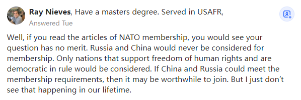 来源:https://www.quora.com/Will-NATO-be-worthwhile-if-Russia-or-China-joins