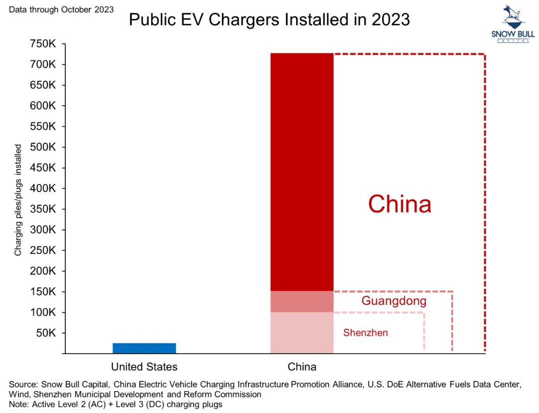 如上所述,值得注意的是大多数美国人在家里而不是在公共场所充电......我想美国并没有试图在充电桩数量上接近中国。