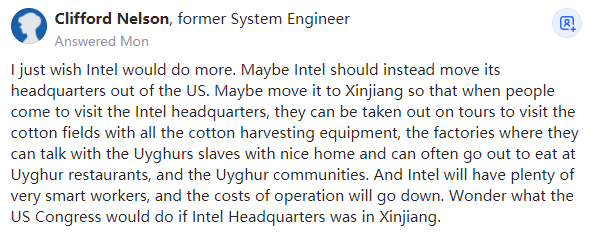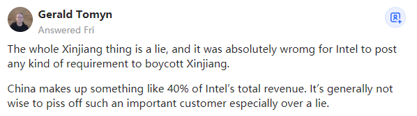 来源:https://www.quora.com/What-is-your-view-of-Intel-apologising-to-China-over-Xinjiang-products-and-labour-directive