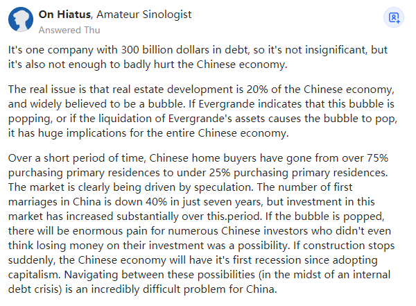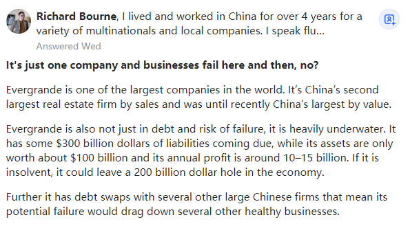 来源:https://www.quora.com/Can-someone-give-me-a-deep-run-down-on-Evergrande-crisis-Why-are-so-many-people-saying-this-is-signaling-collapse-of-Chinese-real-estate-market-Its-just-one-company-and-businesses-fail-here-and-then-no