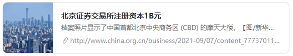 北京:上周,中国主席在首都举行的中国国际服务贸易博览会(CIFTIS)上发表了主旨演讲,他宣布了建立北京证券交易所的计划,该交易所将欢迎中小企业上市交易。拟议中的北京证交所预计将类似于总部位于上海的科创板(STAR market),后者是中国版的纳斯达克,旨在促进科技公司的上市和发展。中国证券监督管理委员会(CSRC)已发布新闻稿,赞扬了北京证券交易所的建立公告。据CNBC报道:新的北京证券交易所打算以目前已上市交易的新三板精选层为基础组建。中国证监会建议选择66家总部位于中国大陆的小型上市公司作为董事会成员。据报道,被选中的公司中只有5%的公司市值超过10亿美元。据CNBC报道,入选的股票包括金属板制造商Speedbird、专业橡胶制品制造商通易航天(Tongyi Aerospace)和包装食品公司朱老六(Zhulaoli)。据信,当局正在收集公众对新交易场所规则的意见和建议,并将在9月22日后公布。2019年7月,中国启动了科创板(STAR market),以测试新的、更快的基于注册制的IPO(首次公开发行)流程,并为投资者提供更高的投资门槛。尽管如此,科创板仍在与IPO注册的意外延迟作斗争,因此建立北京证交所的计划可能会加快努力。杭州经纪公司南华期货研究所所长曹阳辉(音,Cao Yanghui)在一份声明中表示,北京证交所的成立表明金融市场正在“以相对较快的速度发展。如果大家以前都认为(IPO)注册制相当遥远,那么现在可能已经近在咫尺了”。摩根士丹利(Morgan Stanley)的股票分析师凯瑟琳·刘(Katherine Liu)9月2日发布了一份报告,称“我们认为北京证交所将定位于支持中小企业,是其中最好的企业去上海证交所和深圳证交所上市的枢纽。”从我个人的角度来看,北京证交所的成立可以为中国投资者提供更多投资选择,因为许多中国家庭把财富放在了房地产上,他们应该通过在股票、共同基金和债券上下更多赌注来实现投资多元化。此外,美国证券交易委员会(SEC)对寻求在美国股市注册IPO的中国公司施加了更严格的限制。更严格的监管将导致更多的中国公司重返中国的证券交易所,而北京证券交易所可能是他们可行的选择。我们可以从以下网站了解更多有关北京证券交易所提案的信息,链接如下:“新宣布的北京证券交易所是一家有限公司(a limited company),注册资本为10亿元人民币(约1.5534亿美元)。注册资本来自全国证券交易所股份有限公司(NEEQ Co.Ltd.),新交易所的注册地址与NEEQ相同,即西城区的北京金融街。根据公开注册信息,注册工作已在周五完成,即新证券交易所宣布的第二天。”当北京证交所开市后,投资者和交易者将迎来很好的机会。如果中国的中小企业在“新三板”成功注册IPO,它们就可以融到更多资金。