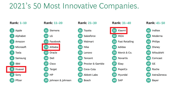 上述名单的发布,表明华为和许多中国企业正逐步走向世界的中心,越来越多的中国公司在世界上扮演着举足轻重的角色。