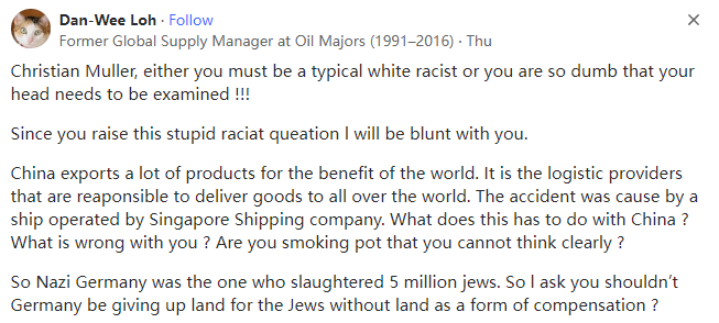 Quora:货轮撞击巴尔的摩关键桥梁,因为船上装载的大多是中国商品,中国是否应该承担责任?本文译自Quora,原标题:Should China be held accountable for the ship hitting Baltimore Key Bridge, as the ship is loaded with mostly Chinese goods?当地时间26日凌晨,美国马里兰州巴尔的摩市帕塔普斯科河上一座桥梁因船只撞击坍塌。据美国有线电视新闻网(CNN)最新消息,当地救援人员表示,有多达20人因桥梁坍塌落入水中。CNN报道称,巴尔的摩正面临一场“大规模伤亡事件”,救援队正在努力营救。巴尔的摩消防局通讯主管凯文•卡特赖特说:“我们正在处理一起涉及多部门的大规模伤亡事件。不幸的是,据我们所知,帕塔普斯科河中有多达20人以及多辆汽车。”卡特赖特称,他们正与美国海岸警卫队合作,一队潜水员正在河里进行搜救行动,当地的温度目前约为零下1摄氏度。Former Global Supply Manager at Oil Majors (1991–2016)Christian Muller,要么你是一个典型的白人种族主义者,要么你笨到需要检查你的脑袋!!既然你提出了这个愚蠢的种族主义问题,那我就直言不讳地告诉你。中国出口大量产品造福了世界,负责向世界各地运送货物的是物流供应商。这起事故是由新加坡航运公司运营的船只造成的,这和中国有什么关系?你是不是抽大麻抽得脑子不清楚了?纳粹德国屠杀了五百万犹太人。那么我问你,德国难道不应该为没有土地的犹太人提供土地以作为一种补偿吗?这些中国货是在美国制造的吗?这艘船在巴尔的摩装货并驶往斯里兰卡,该船由新加坡的一家公司所有,被丹麦的一家公司租用,海湾领航员来自马里兰州或弗吉尼亚州。如果真如所称这艘船失去了动力,那么我认为船主--他们的保险公司--应该承担责任。......他们可能会反过来将责任归咎于出现故障的部件制造商,也许是外部公司在船只靠港时维修了船上的发电机和发动机?我的曾叔父在华盛顿有一家专门从事国际海事法的律师事务所,我打赌他一定在坟墓里“ca-ching”直叫。正如他们所说,“这很复杂”。你难道不知道吗?所有接触过这艘船任何部分的人最好都去找律师,因为保险公司可不想承担这么大的损失。天哪!那是很久以前的事了,我都快70岁了。他娶了我祖父的妹妹,但我记得他姓Wyvill,我想他的女婿后来成为了公司的合伙人。这应该是很久以前的事了,因为他那一代人大约出生于19世纪末到1900年附近。我只记得他们有一个可爱的家(在贝塞斯达?),里面装满了来自世界各地的宝藏,大部分是亚洲的。为了工作,他经常出差。我有一幅他的妻子(我的曾姑母)画的画,她是一位出色的艺术家。可悲的是每22个人中就有1个人是律师!因此,我们很高兴5年前就搬走了,现在连回去看看都不敢想象。我以为我可能会认出这个名字--从事海事法方面的人很少--但我没有(认出)。如果是一家老的法律事务所,而且还在营业的话,我可能会认识它。我相信他的职业生涯和生活一定很有趣,如果他在的话,他一定会对巴尔的摩的事故发表看法!编造一个阴谋论,把一切都归咎于拜登。汽油用完了?怪拜登。生菜变黄了?肯定是因为拜登让它们非法入境的。股票升值了?我的意思是责怪拜登吧。一个被定罪的欺诈者和强奸犯将在2025年掌舵美国,毕竟,强奸犯会成为最好的总统。我的股票投资组合今天上涨了近1万美元--谢谢,乔。Torn between different religions & also between science您生活在美国吗?如果是,那么你可以去沃尔玛等连锁店看看有多少东西来自中国。Lives in Turkey (1923–present)确定“达利号”轮船与巴尔的摩“弗朗西斯-斯科特-基”大桥相撞的责任是很复杂的,它并不仅仅取决于货物的原产地。虽然“达利号”主要运载的是中国货,但责任通常在于船舶的运营商,因为它们的任务是确保航行安全并遵守海事法规。对此类事件的调查会优先考虑船舶维护、船员行为和环境条件等因素。如果是船员或船东公司的疏忽或违规行为导致了动力损失和随后的碰撞,那么无论货物来自何方,他们都要承担责任。虽然机组人员都是印度人,不是中国人,但别忘了,印度是中国的邻国。货轮属于新加坡公司,新加坡是中国的一部分吗?这不重要,他们看起来就像是中国人。那艘货轮是韩国制造的。哦,我们知道韩国是我们的盟友。虽然他们与中国人长得很像,但他们不是中国人,但船上肯定有很多中国制造的零件。中国当然必须对这次事故负责。不,这不是一起事故,这一定是中国对美国发动的恐怖袭击。Truck Driver at Ozark Motor Lines (2023–present),Lives in Vicksburg2016–presentOzark Motor Lines的卡车司机(2023年至今),2016年至今生活在维克斯堡也许是他们太无知了,没有意识到新加坡虽然位于亚洲,但无论如何都不是中国的一部分。或者是那些极右翼网站中的某个网站出于只有他们自己知道的原因这么说,而鹦鹉们却在重复这些话,好像他们是权威和睿智的。已经有中国人向美国博客发出信息,称是中供入侵了船只的数字控制系统并导致了撞船事故。中供不会使用中国船只,因为这样一来中国要赔偿损失。这是一艘来自新加坡的船,船上装的中国货并不意味着什么。第三次世界大战已经打响,中供不怀好意。虽然我没有(确切的)证据,但我知道中供完全有这样做的能力。