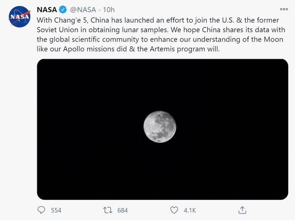 lives in The United States of America (2008-present)显然,尽管契丹人是如此不可信,但他们的登月计划却完全可信,因此美国宇航局要求中国分享数据和样本。