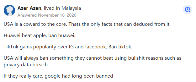 TikTok比instagram和facebook更受欢迎,美国就禁止TikTok。美国将用如隐私数据泄露这样的胡说八道禁止所有它无法打败的事情。