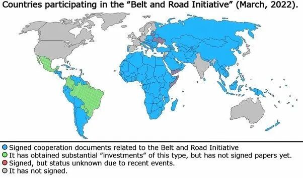 一共7.32亿。而中国的人口总数为14.12亿(2021年),全世界的人口为80亿(2022年)。从这个角度来看,中国的人口数量几乎是第一张地图上的两倍。而第一张地图上的人口数量只有第二张地图上的人口数量的9%:虽然你可以喋喋不休地声称其他几个国家“想要对抗中国”,但无论如何,与下面的地图相比,它都显得苍白无力:为了喜剧效果,就像我在第一张地图上所做的那样,让我们快速粗略地看一下我们正在谈论的那些数字:没错,这是50亿人。我决定不把新西兰或葡萄牙这样的国家算在这两个类别里。从字面上看,我对第一张地图持怀疑态度。再说一遍,从整体上看,刚才的数字约占世界人口总数的62%,即接近2/3!我不知道你们生活在一个什么样的世界里,以至于让你们觉得9%的世界人口就是“整个世界”,而62%的世界人口在你们眼里毫无意义。我绝不是什么数学天才,但我敢肯定62%的世界人口比9%的世界人口要多。事实上,我很确定它大约是9%的六倍多。