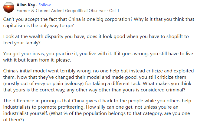 Former & Current Ardent Geopolitical Observer,Lives in With Mother Earth你们就不能接受中国是一个大公司的事实吗?为什么你们认为资本主义是唯一的出路呢?