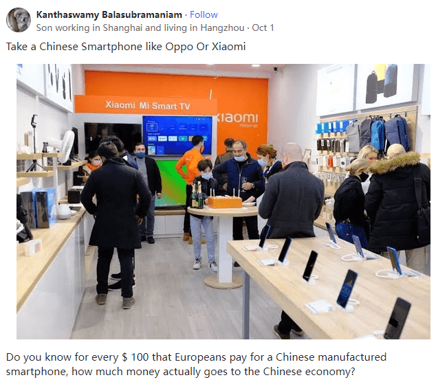 Kanthaswamy BalasubramaniamSon working in Shanghai and living in Hangzhou,Lives in Chennai, Tamil Nadu, India儿子在上海工作,住在杭州,现居印度泰米尔纳德邦钦奈你知道欧洲人每花100美元购买一部中国制造的智能手机,实际上有多少钱流向了中国经济吗?就是说有91-92美元流向了美国、德国和瑞士等欧洲国家以及日本、韩国和台湾地区。中国完成了所有的辛勤工作,而西方国家及其七国集团伙伴则将每部智能手机总零售收入的 92%收入囊中。每卖出一台联想笔记本电脑,英特尔、英伟达和其他几家公司就能赚一大笔钱,而中国和联想通常每100美元只能赚7-8美元。这就是华为成为靶子的原因。如果在美国和欧盟畅通无阻,华为每100美元最多可赚65美元。它采购调制解调器、芯片和GPU的钱都会流向中国,只有日本和德国人的CMOS和光学器件能从中赚钱。即使仅为印度塔塔公司提供电池和零部件,中国人也能从每100美元中赚到近58美元。中国对这些地区的出口规模可能很大,但就大部分高价值出口商品而言,中国及其实体的收入远远低于欧洲、美国和西方的实体。中国对这些地区的出口可能会减少,但在高价值出口方面,中国及其实体的收入远远高于欧盟或美国及其实体。对于这些所谓的自由贸易的支持者来说,这是一个巨大的问题。与挪威、法国、美国和澳大利亚等西方国家相比,中国为消费者提供的补贴最少。中国汽车制造商获得了生产补贴,但特斯拉也是如此,而它是一个不折不扣的美国品牌。冯德莱恩和其他欧洲人正在看到一个不断变化的世界,风从亚洲缓缓吹来。2008年,中国向美国支付了铝提取技术许可证的费用。2017年,中国破解了整个流程,他们不再向美国公司支付一分钱。从2010年起,中国通过碳高速撞击工艺(CHSI)破解了整个工艺流程。截至2006年,中国一直向西方国家支付航天材料费和高精炼费。地主们开始紧张起来,因为中国第一次榨取了他们赚到的大部分钱,因为中国拥有技术。为什么他们不向中国支付许可费并把大众和梅赛德斯卖掉,然后把钱留在国内呢?它只会扼杀创新,抑制发展并保护自己的产业,直至它们不堪重负。